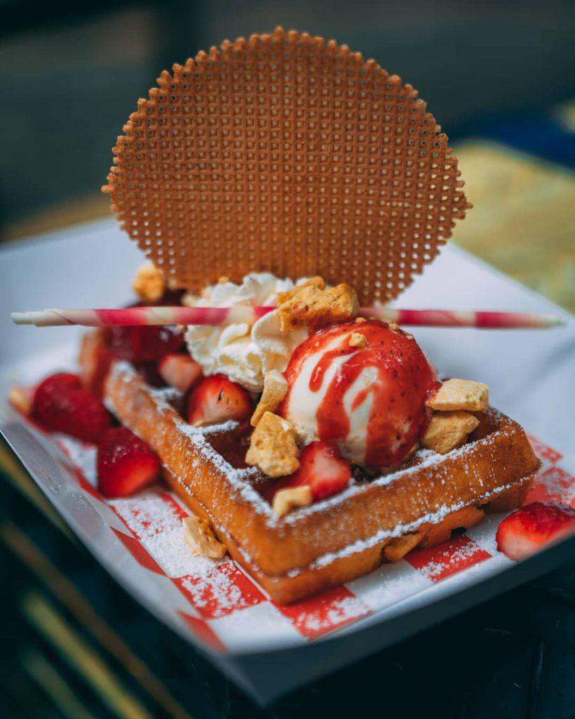 Our bus is an attraction in itself at your event. Young and old love the concept of being able to sit and eat on top of a real English double decker bus. We offer approx. 37 seats for our patrons. People might visit us for the bus at first, but they return for our food. We pride ourselves on serving beautiful & freshly cooked waffles.